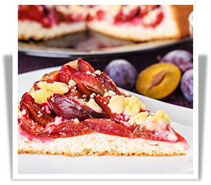 A Meggle Joghurtos vajat, a cukrot és a fahájat habosra keverjük. A tojásokat egyenként hozzáadjuk. A lisztet összekeverjük a sütőporral, majd óvatosan a masszához dolgozzuk. A kész masszát ez kivajazott és kilisztezett tortaformába öntjük. A szilvákat kimagozzuk és negyedeljük, és a massza tetejére helyezzük. A lisztet, a Meggle Joghurtos vajat, a cukrot és a fahéjat az ujjaink közt elmorzsoljuk. A kész morzsát egyenletesen elosztjuk a gyümölcs tetején. 180°C-on körülbelül 50 percig sütjük.