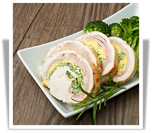 Elkészítés: A csirkemellet felnyitjuk úgy, hogy nagyjából egy cm vastag szeletet kapjunk. Ízlés szerint sózzuk, borsozzuk. A húsra kenjük a Meggle fűszervajat, majd felcsavarjuk és baconba tekerjük. A végeit fogpiszkálóval megtűzzük. 180C fokos sütőbe, vagy 350C fokos parázsra téve fóliával letakarva, vagy fóliába csomagolva 20-30 percig sütjük, aztán eltávolítjuk a fóliát, és még 10 perc alatt pirosra sütjük, grillezzük. Szeletekre vágva tálaljuk.